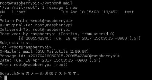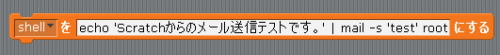 echo 'Scratchからのメール送信テストです。' | mail -s 'test' root